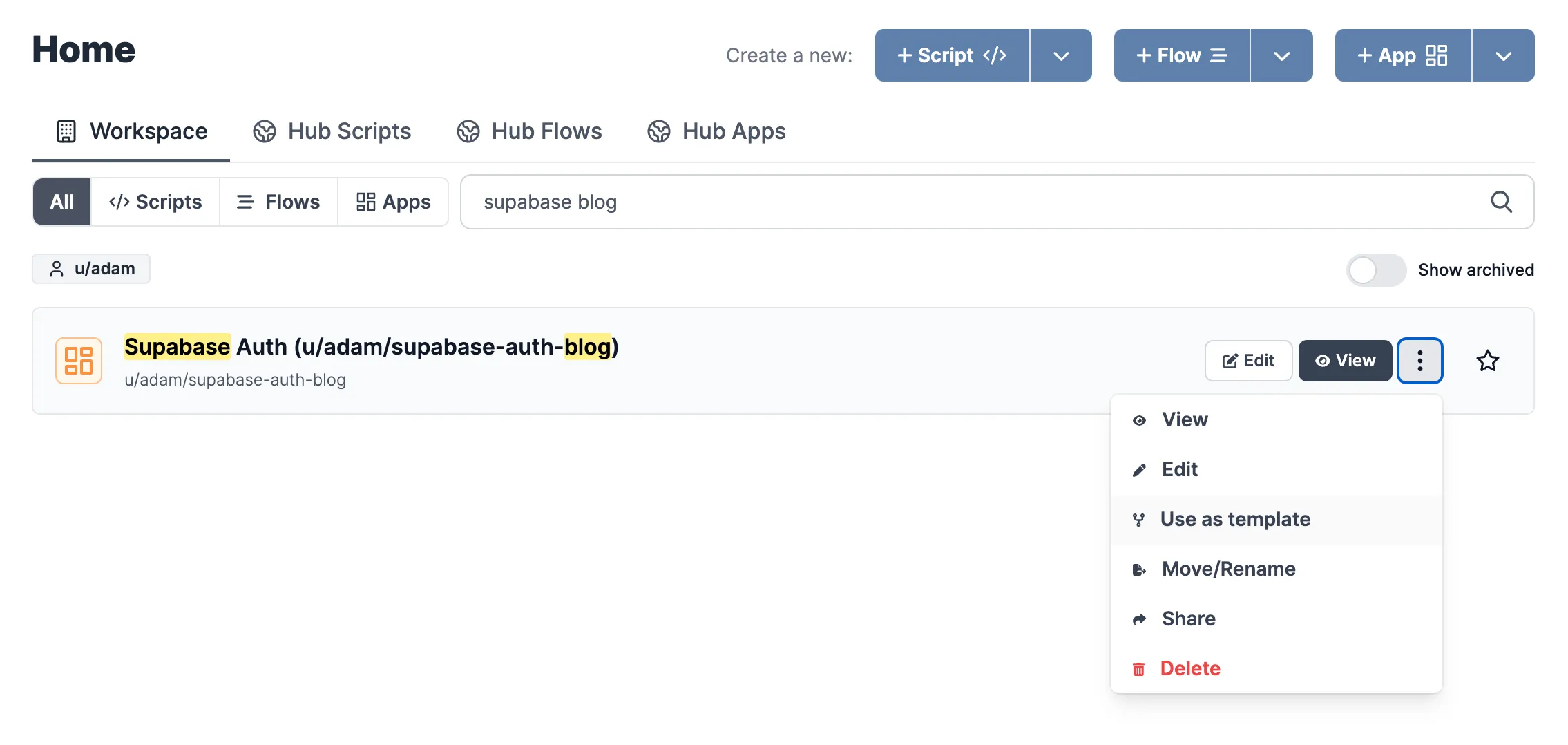 Browse the Hub to find more pre-made scripts for Supabase, Mailchimp, OpenAI, and many other services. All of them can be imported directly into your Windmill projects.