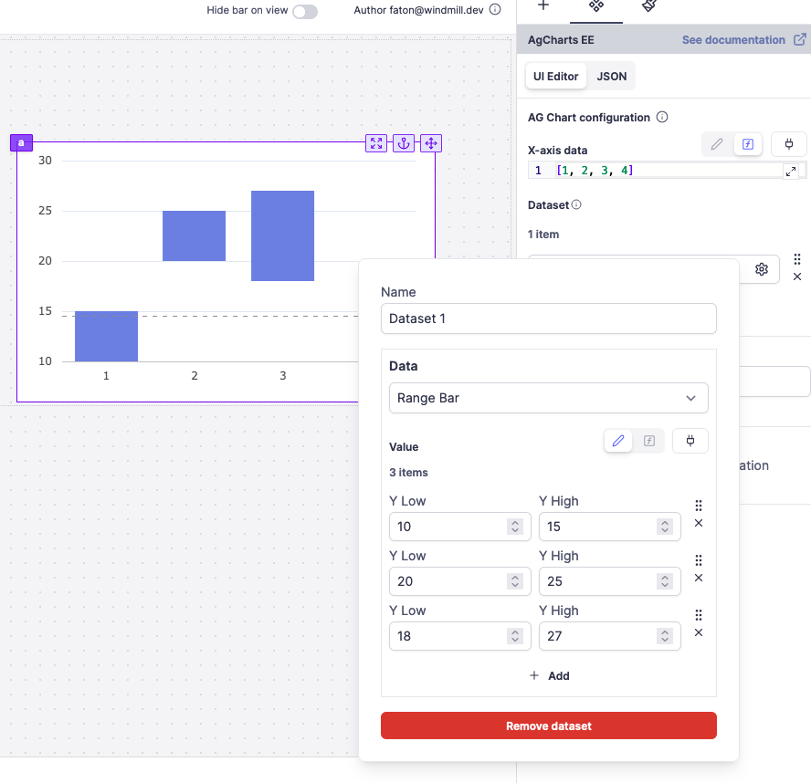 The following section details Ag charts component's specific settings. For more details on the App editor, check the dedicated documentation or the App editor Quickstart: