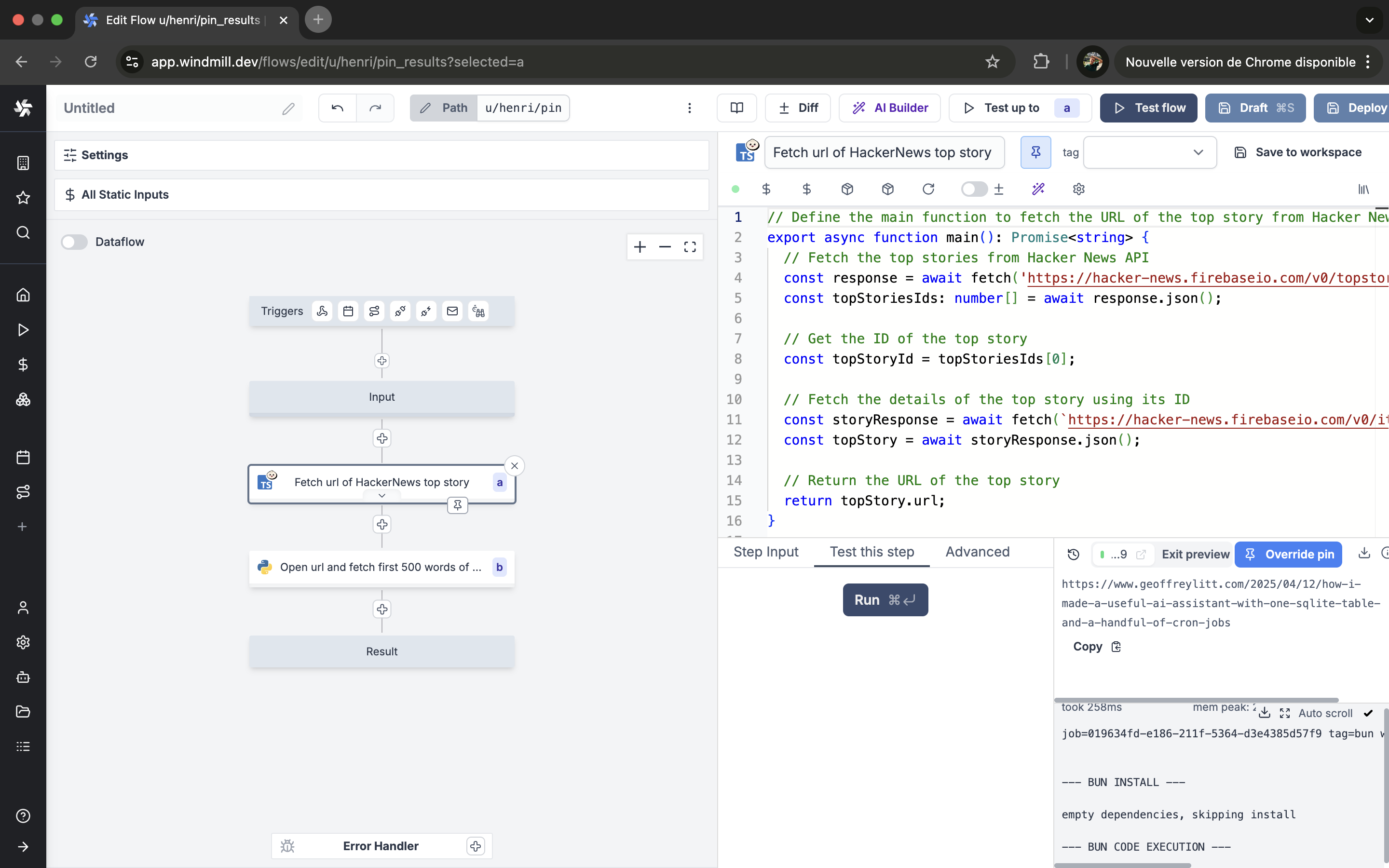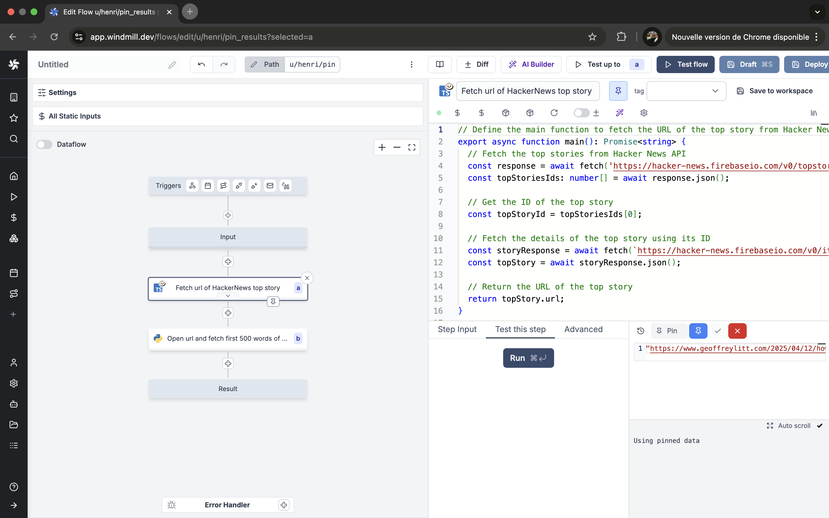 Step mocking and pinning results allows faster iteration while building flows. When a step is mocked or pinned, it will immediately return the specified value without performing any computation.